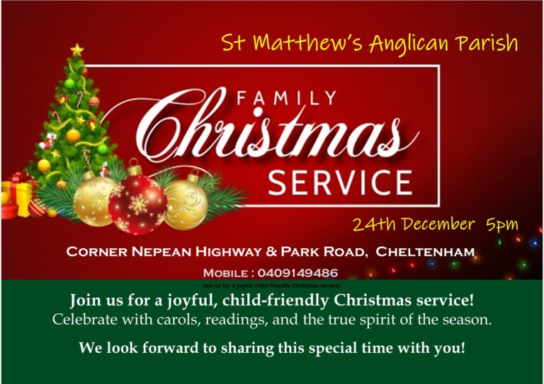 Come and Celebrate Christmas at St Matthew’s Anglican Church, Cheltenham